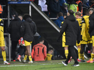 Dabei begann die Partie zunächst äußert verhalten. Beide Mannschaften scheuten das Risiko. Stattdessen gab es viele Querpässe im Mittelfeld, gelegentlich einen Steilpass – und bloß eine echte Chance: Gladbachs Nationalstürmer Tim Kleindienst setzte einen Kopfball an die Latte (26.).