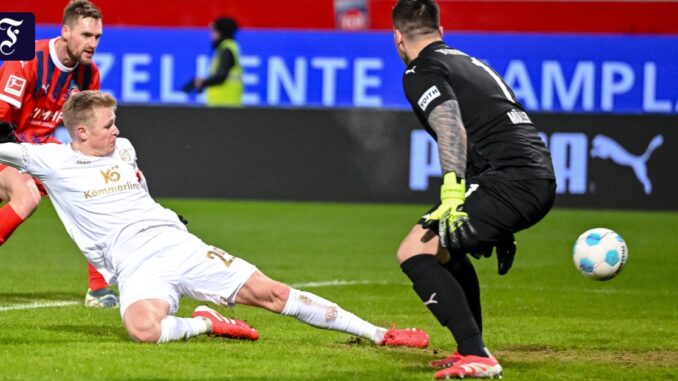 Eine knappe halbe Stunde stand die Heidenheimer Defensive recht sicher. Doch dann schlug Burkardt zu. Die Hereingabe von Anthony Caci drückte der 24-Jährige über die Linie.
